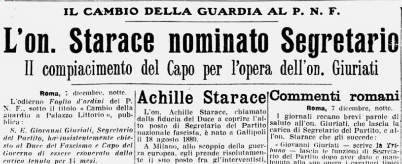 Starace fu un personaggio singolare. Per alcuni tratti un’autentica macchietta, lui e quella sua infinita fedeltà al Duce. Mussolini lo tenne otto anni(era il suo parafulmine) e poi se ne sbarazzò quando si accorse che quello che portava al regime era più discredito che prestigio