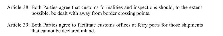 Perhaps the biggest question, is does the backstop answer the exam question? Does it meant he removal of all checks and related controls? No it displaces these checks and also provides for the possibility of "centralised inspection points" away from the land border 7/