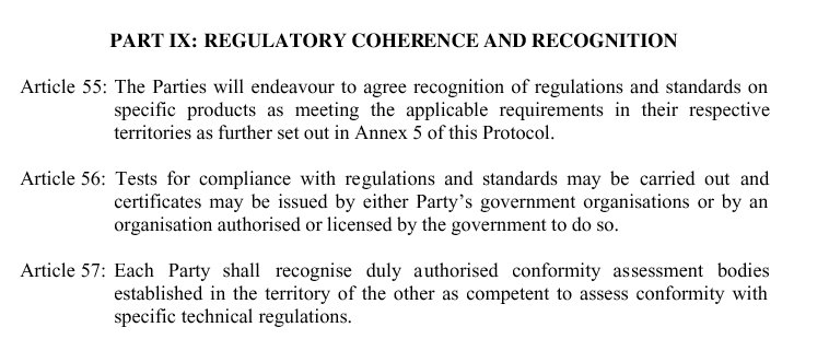 Some of these are fine to ask for in an ambitious free trade agreement. The UK should be able to negotiate mutual recognition of conformity assessment. But this is a backstop in the event the FTA can't be negotiated. Why would the EU give it all away for nothing. 5/