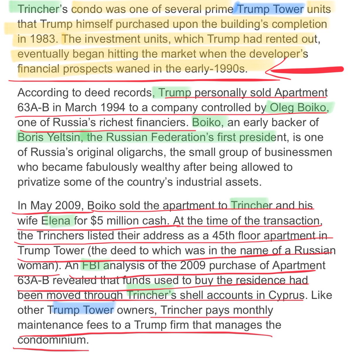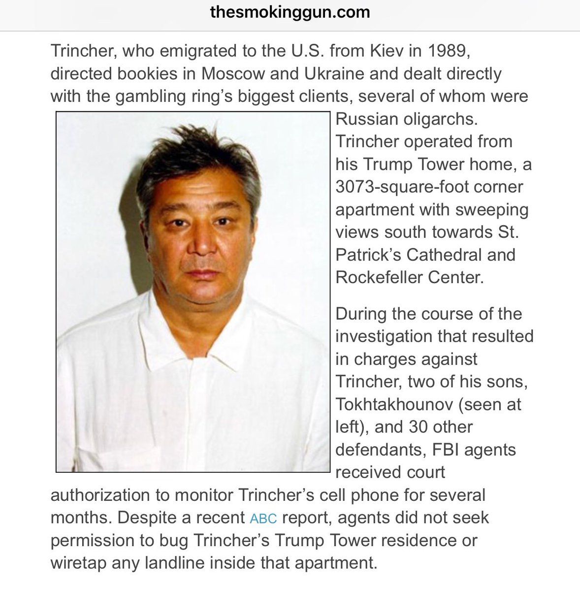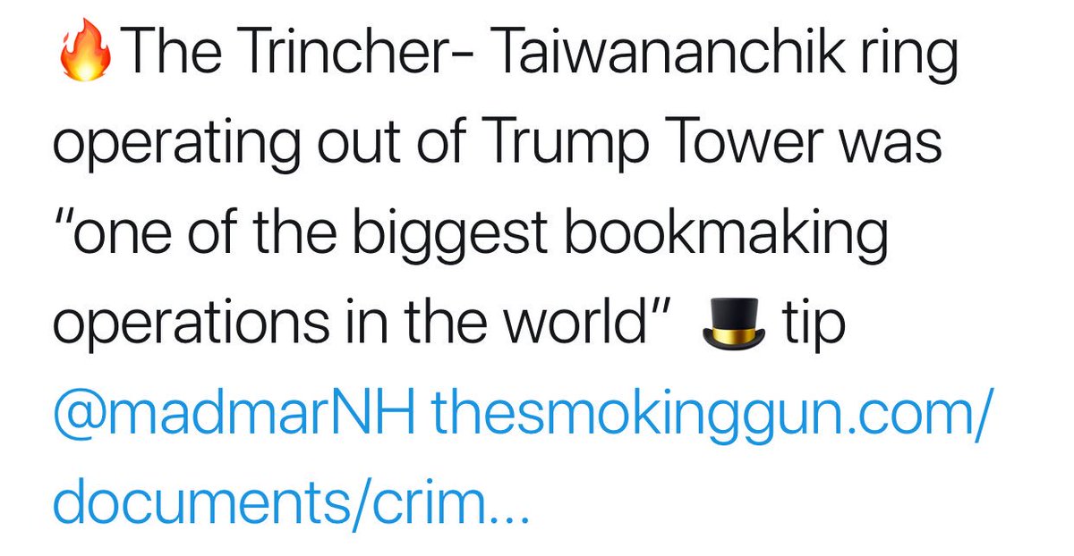 💰Sure enough, Trincher bought condos in Trump Tower w laundered money which he earned while operating the largest bookmaking operating in the world‼️