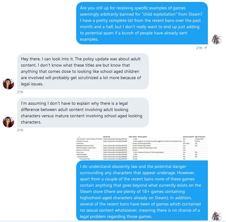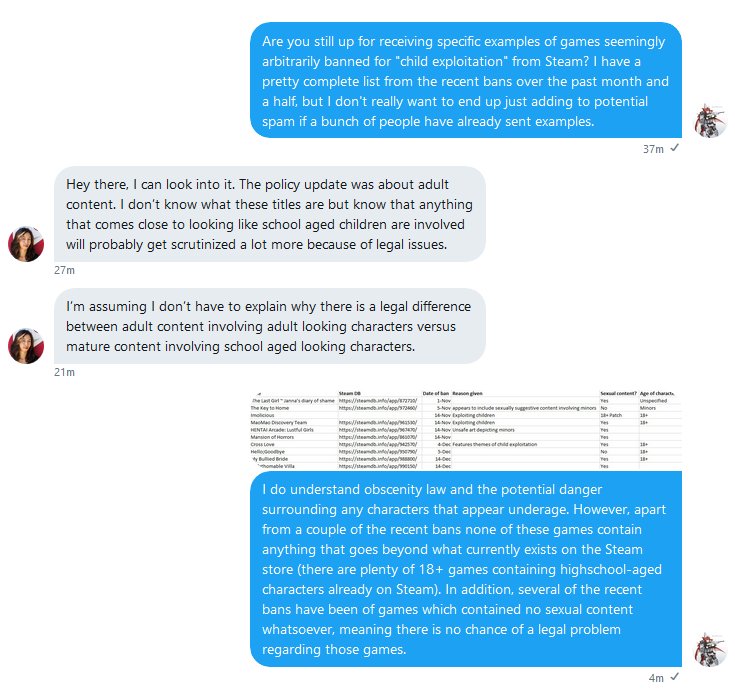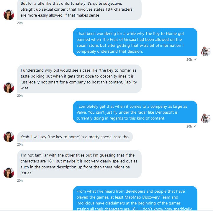 @StarKitsune0 shared some additional screenshots from the conversation. These indicate that part of the issue with Key to Home may have been insufficient disclosure during content review, Thus the reason for its ban may as much a compliance issue as a legal one.