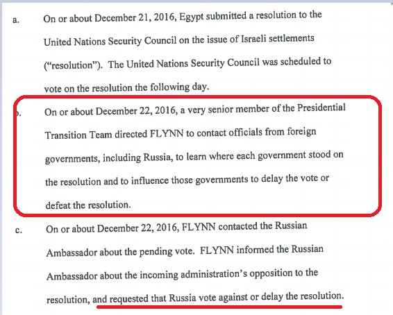 But in his guilty plea, Flynn told a different story - that Trump Transition officials had him work to get Russia to vote against the resolution