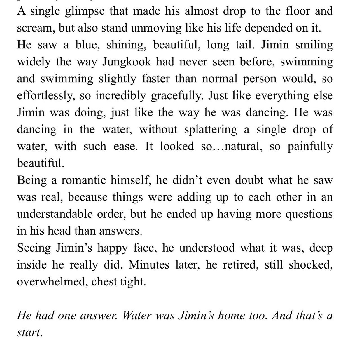 in which jimin is allergic to water. that’s what they say, at least. till one night jungkook goes to school to practice for an important swimming competition only to see a blue - haired boy in the water, with a beautiful tail instead of his feet.