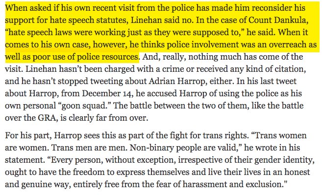 Fascinating case of UK hate speech laws: @Glinner celebrates when alt-right figures are fined by courts for their speech. But @Glinner is fanatical about arguing trans women aren't women; an LGBT activist, @DrAdrianHarrop, reported @Glinner to the police & they interrogated him: