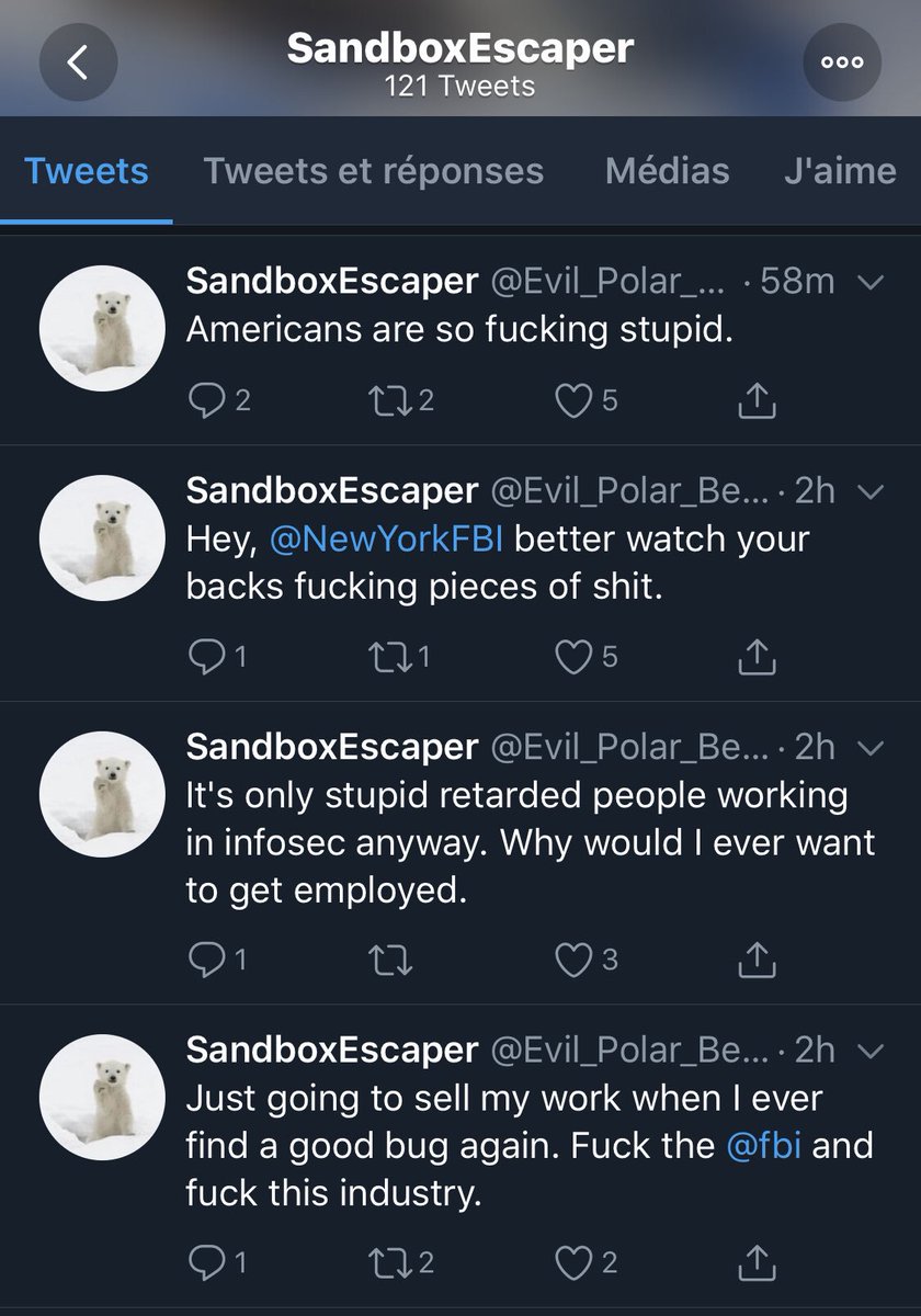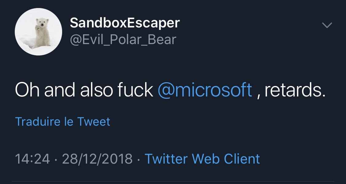 For the background, he is a talented security researcher who is used to drop Windows 0day on Twitter. Unfortunately, he has his own issues 😐