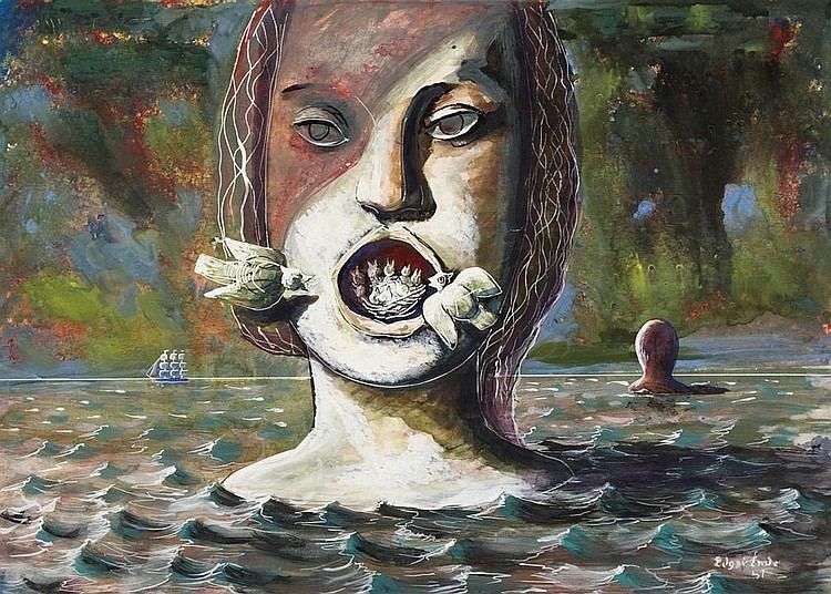 Ende met the French Surrealist Breton in 1951. The latter declared Ende an official Surrealist. This is remarkable as Breton was unable to excavate his subconscious in the way Ende could! Icarus (1955), Die Straßenbahnführer (1951), The Foot (1952) & the Forbidden Fruit (1951)