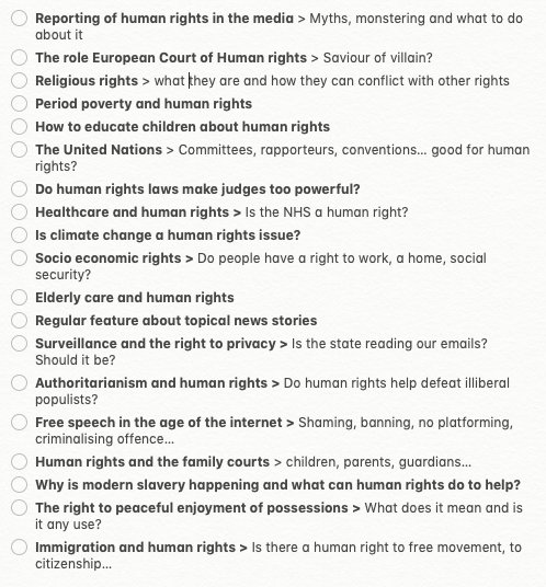 2/ You had some fascinating ideas for topics, keep em coming! Here's a list. Now the question is who should I be looking to invite on? I'm keen to do in-depth discussions - please don't just suggest HR experts, I want to broaden out the discussion, not narrow it. Reply with ideas