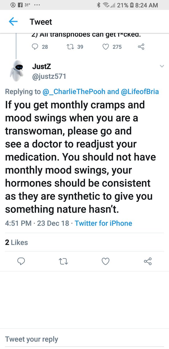 Also the person above has a thread on attempts to push us back 30 years towards some terms used for explaining trans folks back in the 1980's. All about classifying us with more "sex" related words that we spent years pushing for change from. Strange for someone born in 1999 yes?