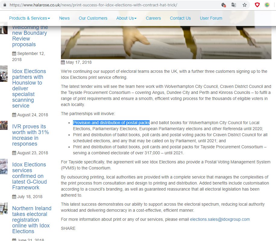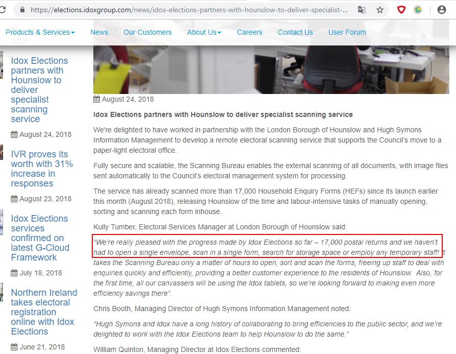 Idox claims to “run the whole postal vote service for the customer so it can focus on other important area of the elections” (From Idox video)