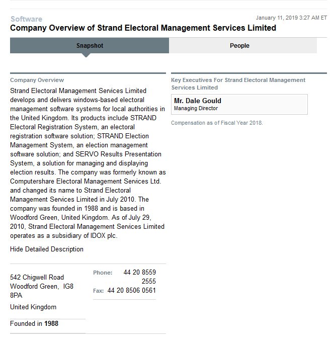 How many votes this private provider handled for the EU Ref? No one knows but Idox, not even the Elec Com as it's each council's private business.