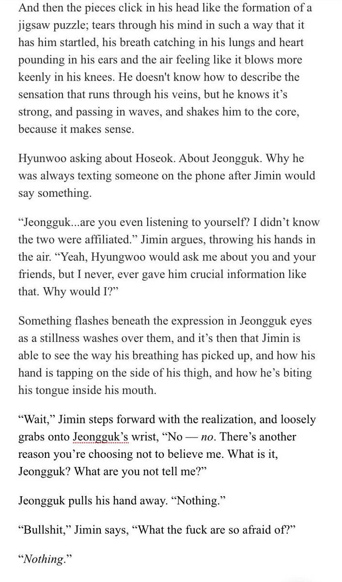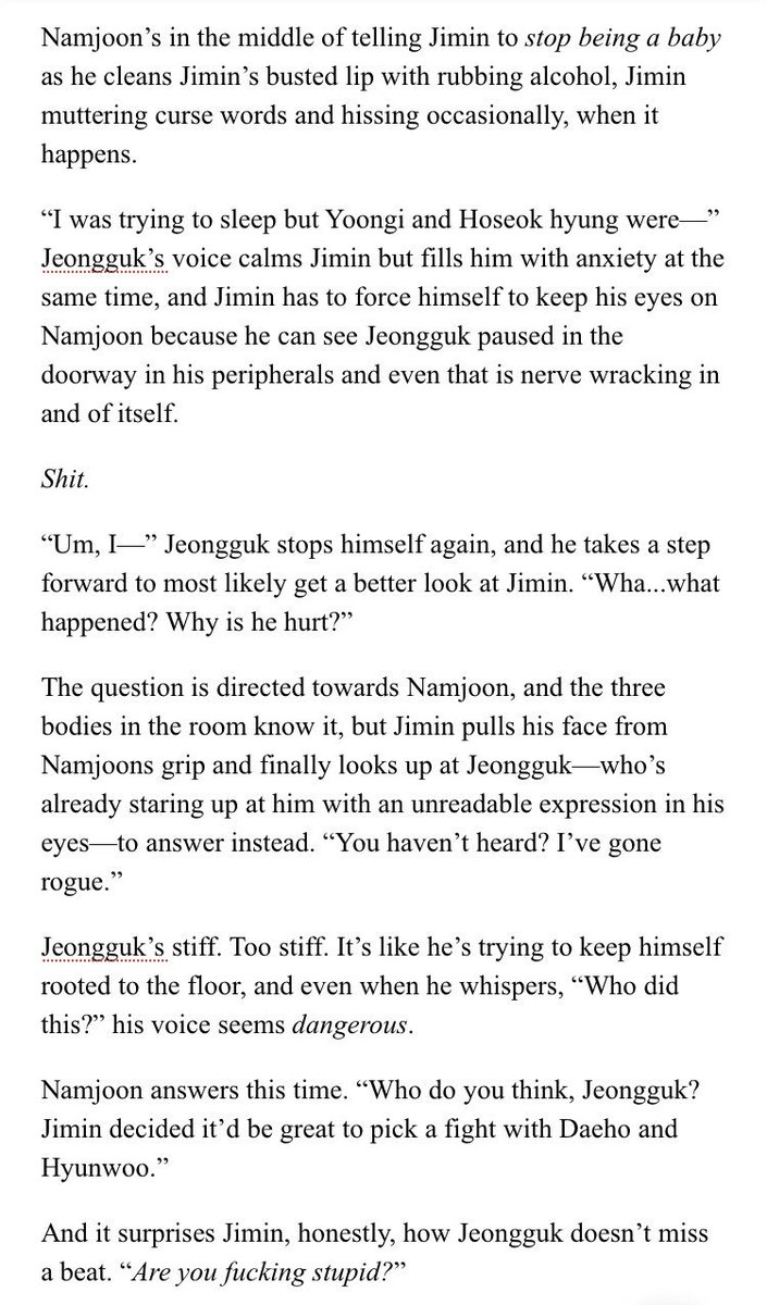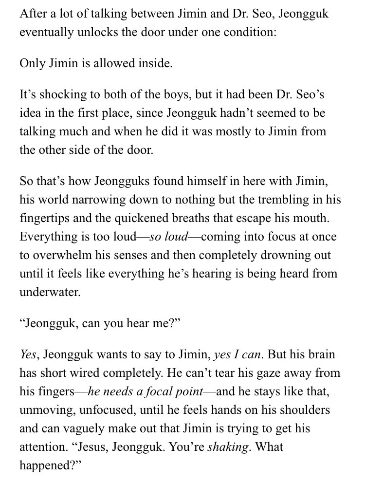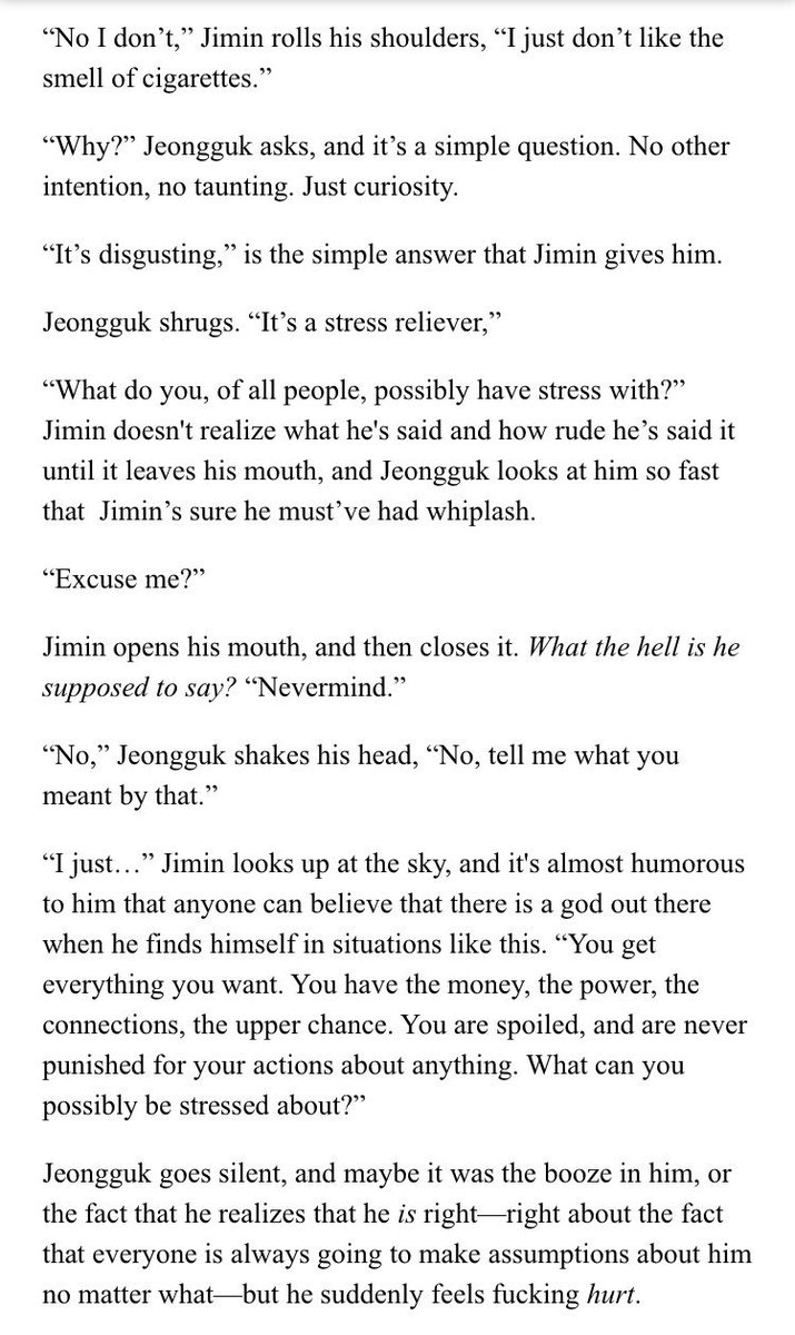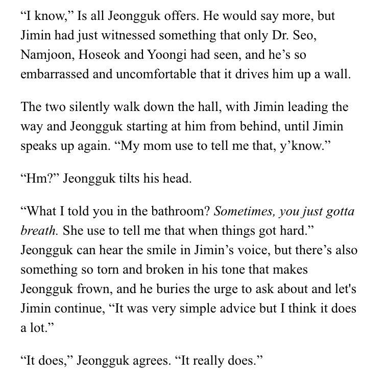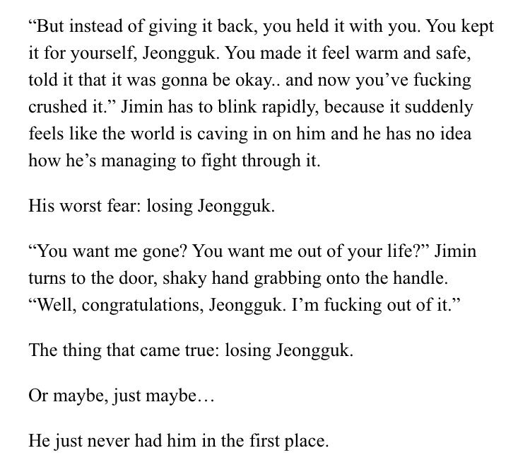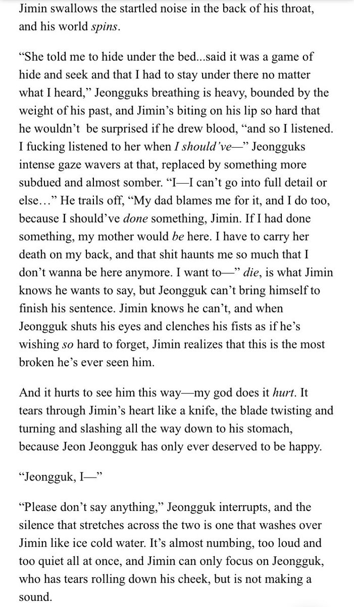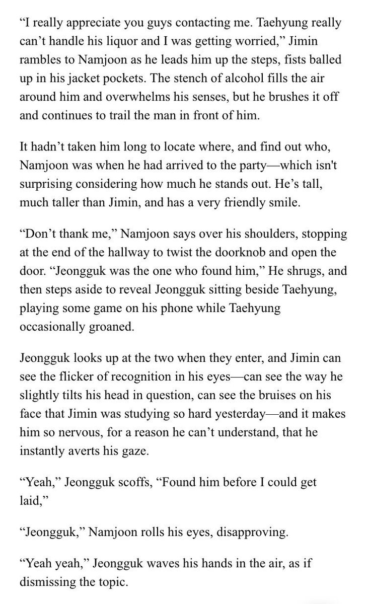 β Jimin's an aspiring psychology student at SNU. Jeongguk is the campusβ player & bad boy. After accepting an internship at a therapists office, Jimin discovers something about Jeongguk that no one else seems to know.