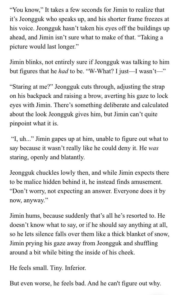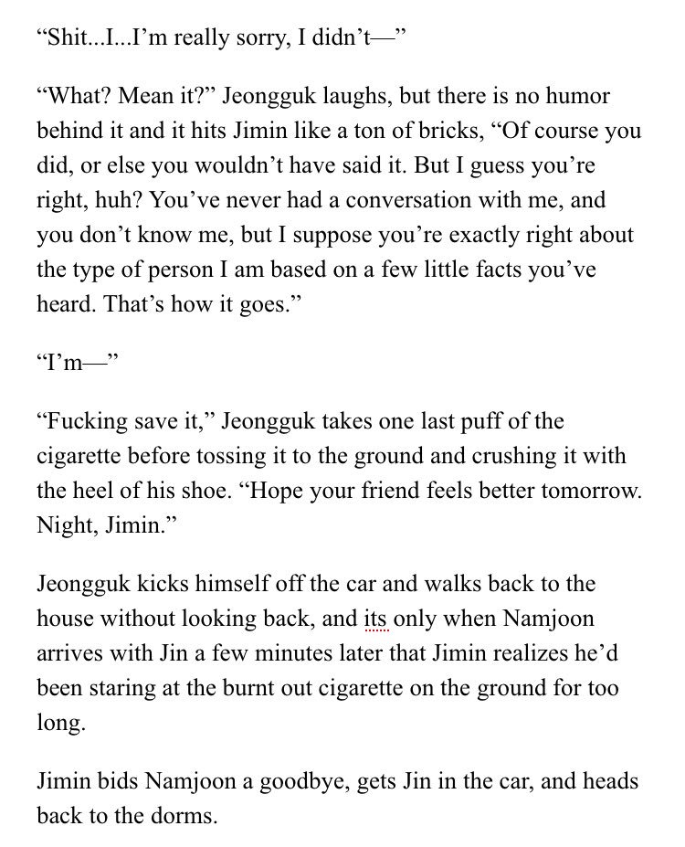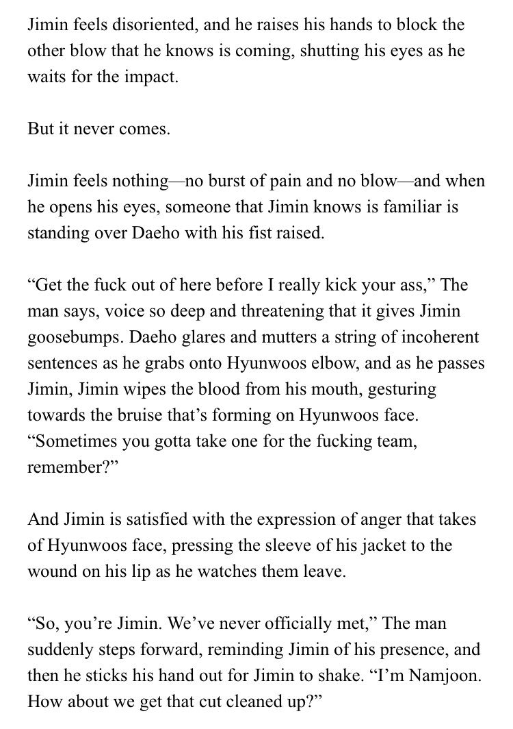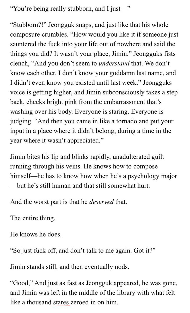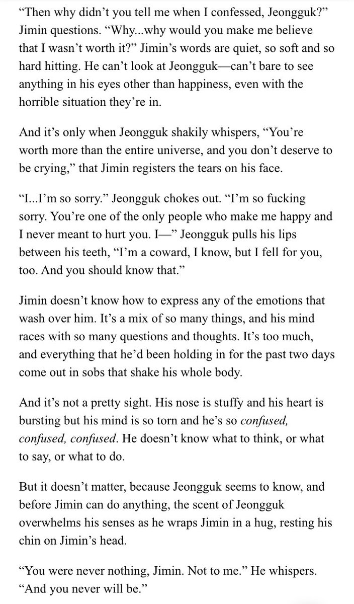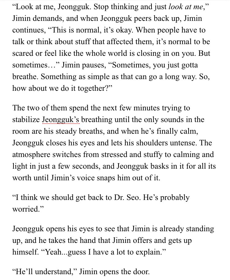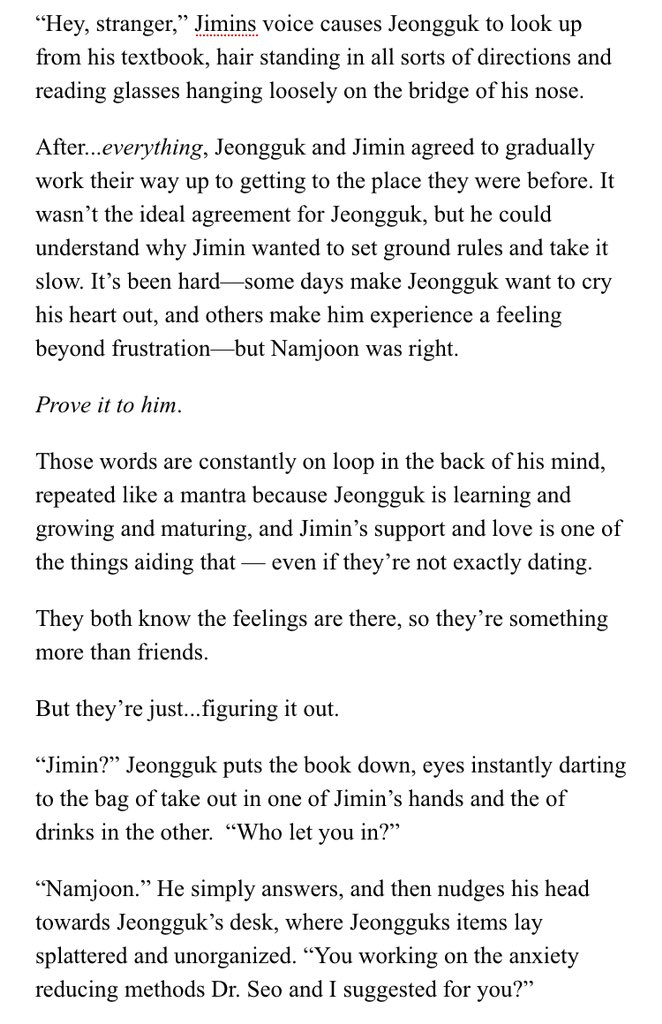 β Jimin's an aspiring psychology student at SNU. Jeongguk is the campusβ player & bad boy. After accepting an internship at a therapists office, Jimin discovers something about Jeongguk that no one else seems to know.