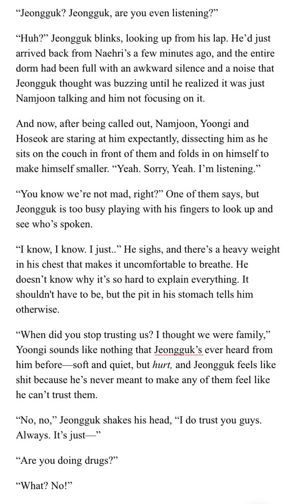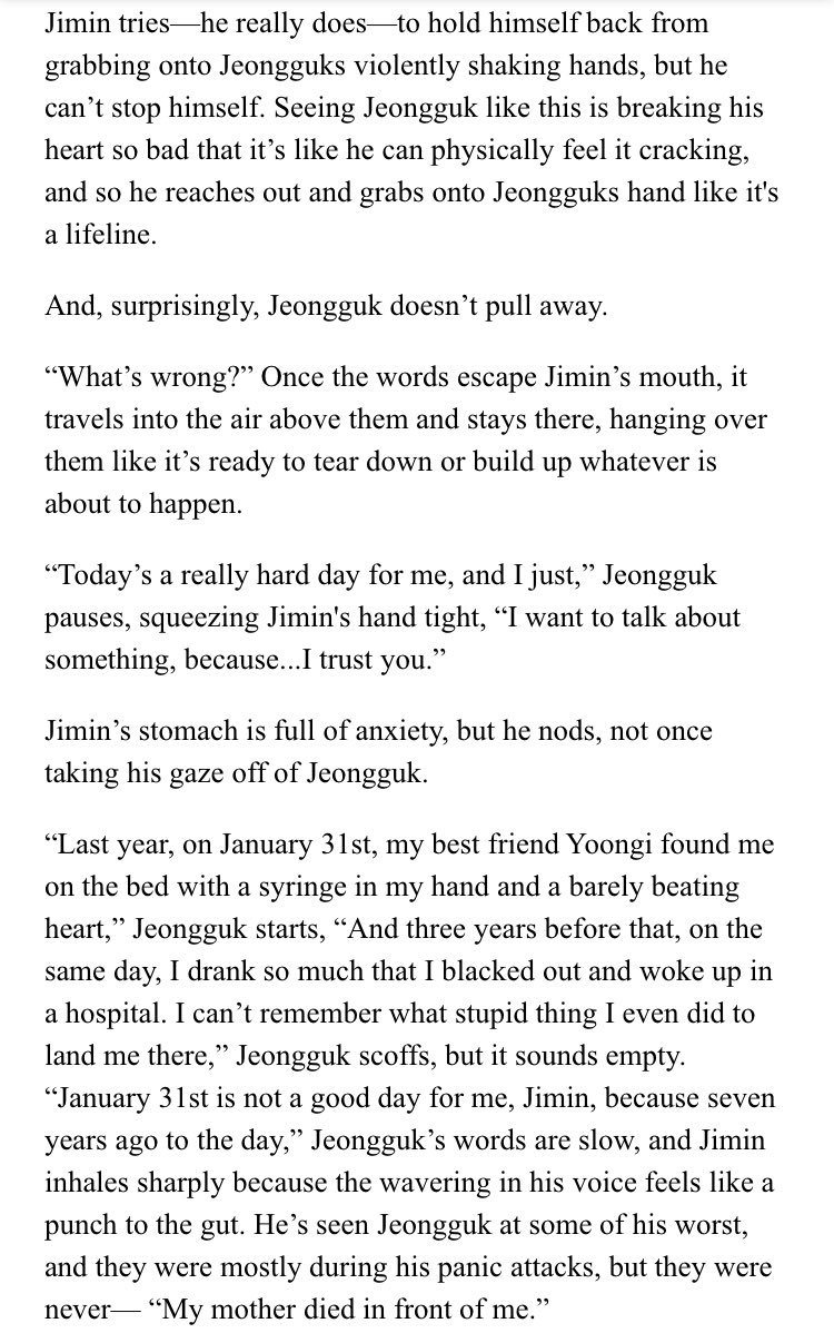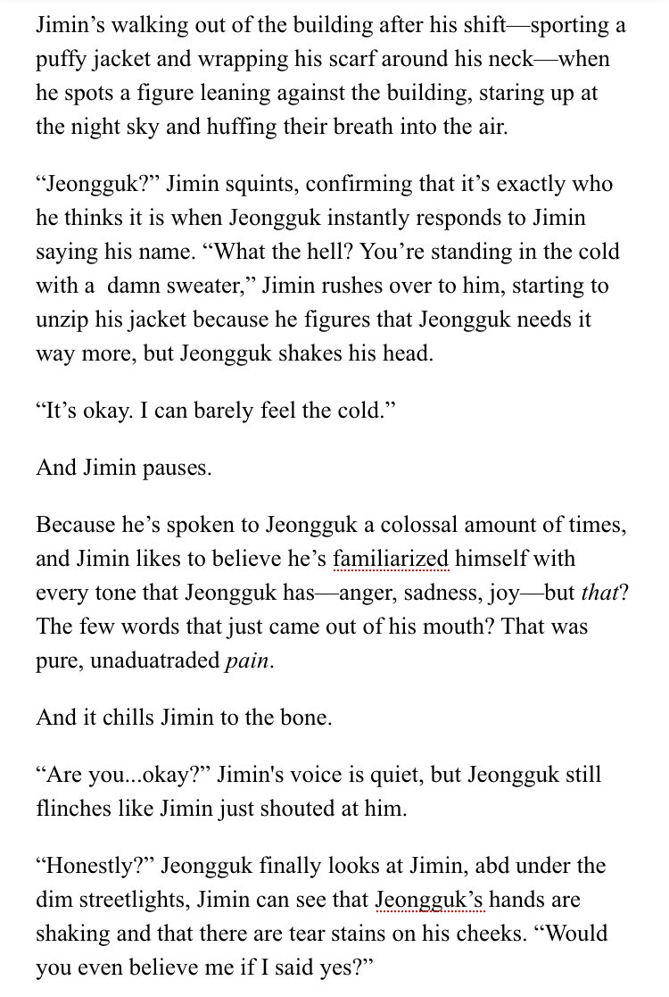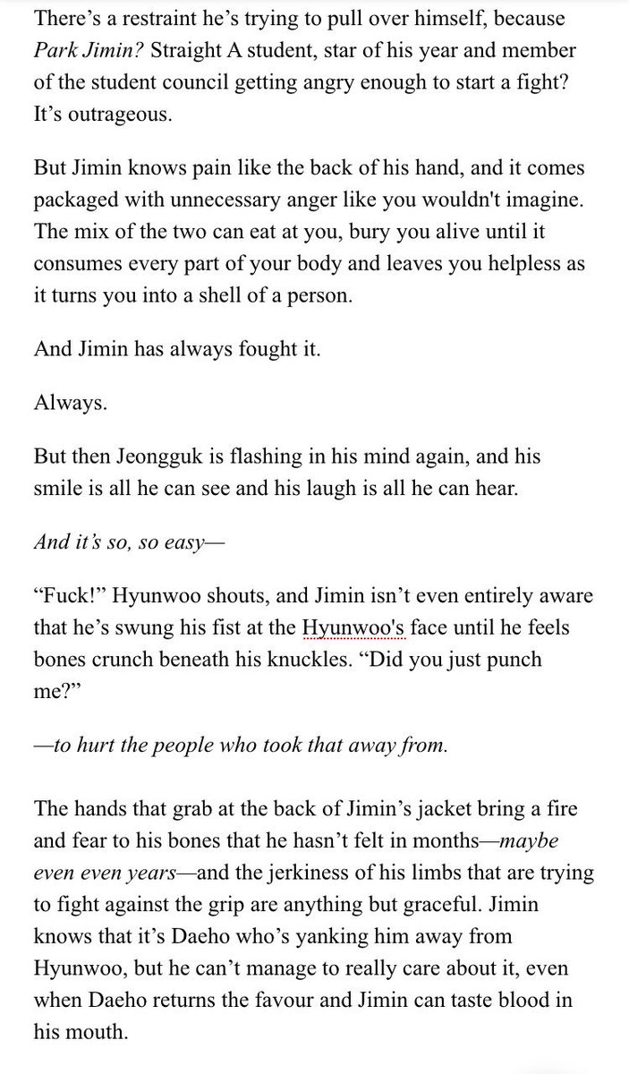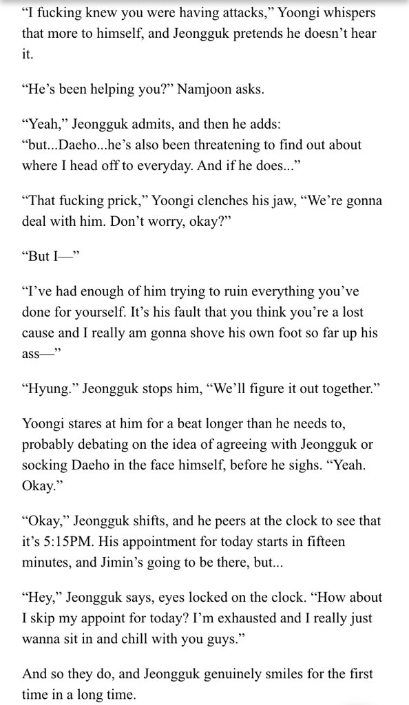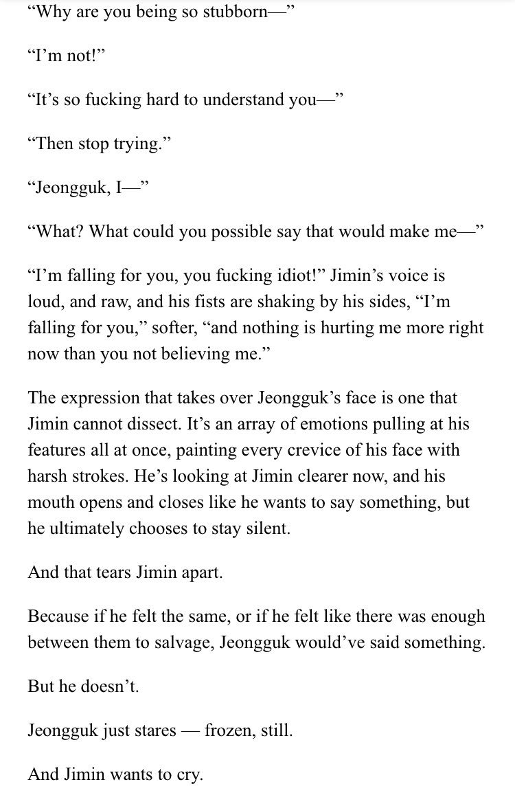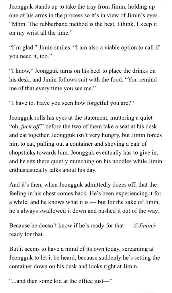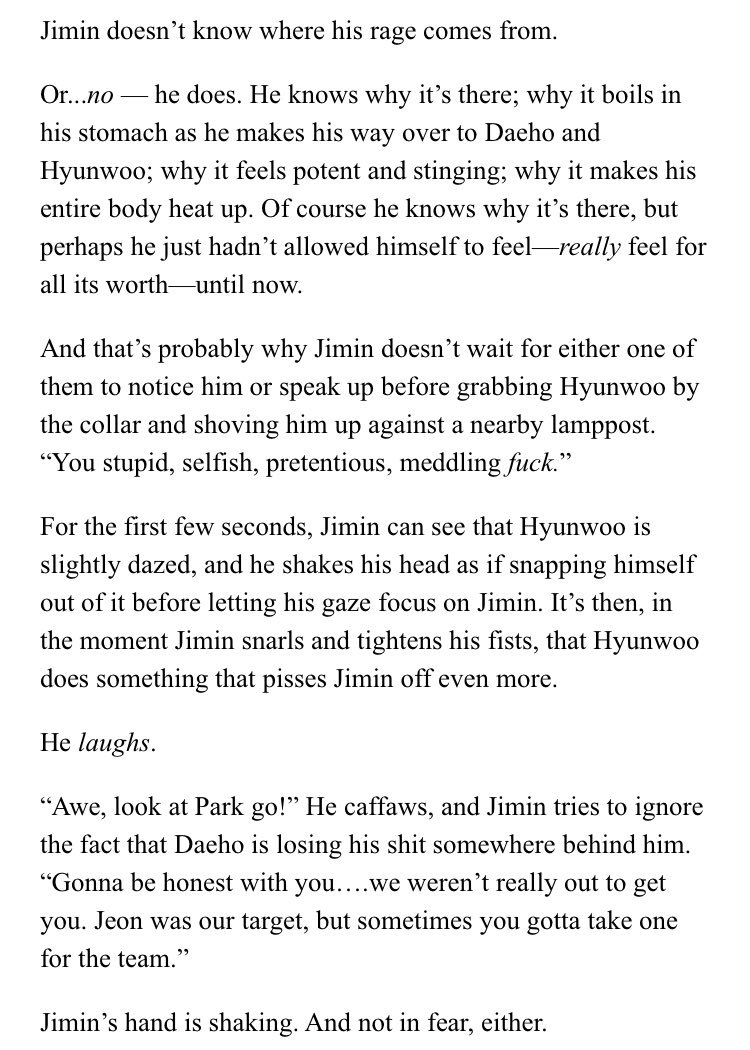 β Jimin's an aspiring psychology student at SNU. Jeongguk is the campusβ player & bad boy. After accepting an internship at a therapists office, Jimin discovers something about Jeongguk that no one else seems to know.