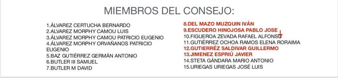 Consejo de Administración de IDESA a junio del 2018. Además de JJE destacan estos nombres: