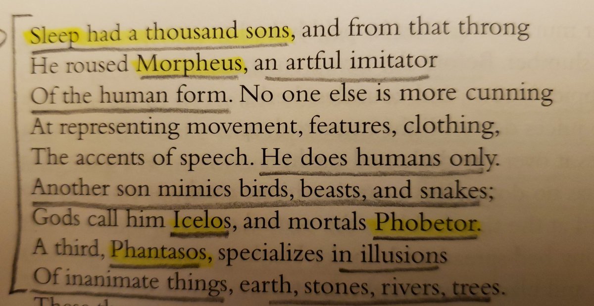 In Metamorphoses Bk XI, Ovid describes Somnus, the god of sleep and three of his sons [Oneiroi]: