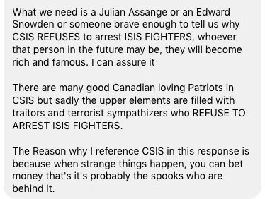 4. He goes on to suggest CSIS has been infiltrated by treasonous elements.