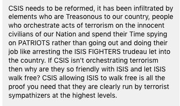 3. Then he claims CSIS "may be" the posting the Trudeau death threats on the Yellow Vests Canada page.