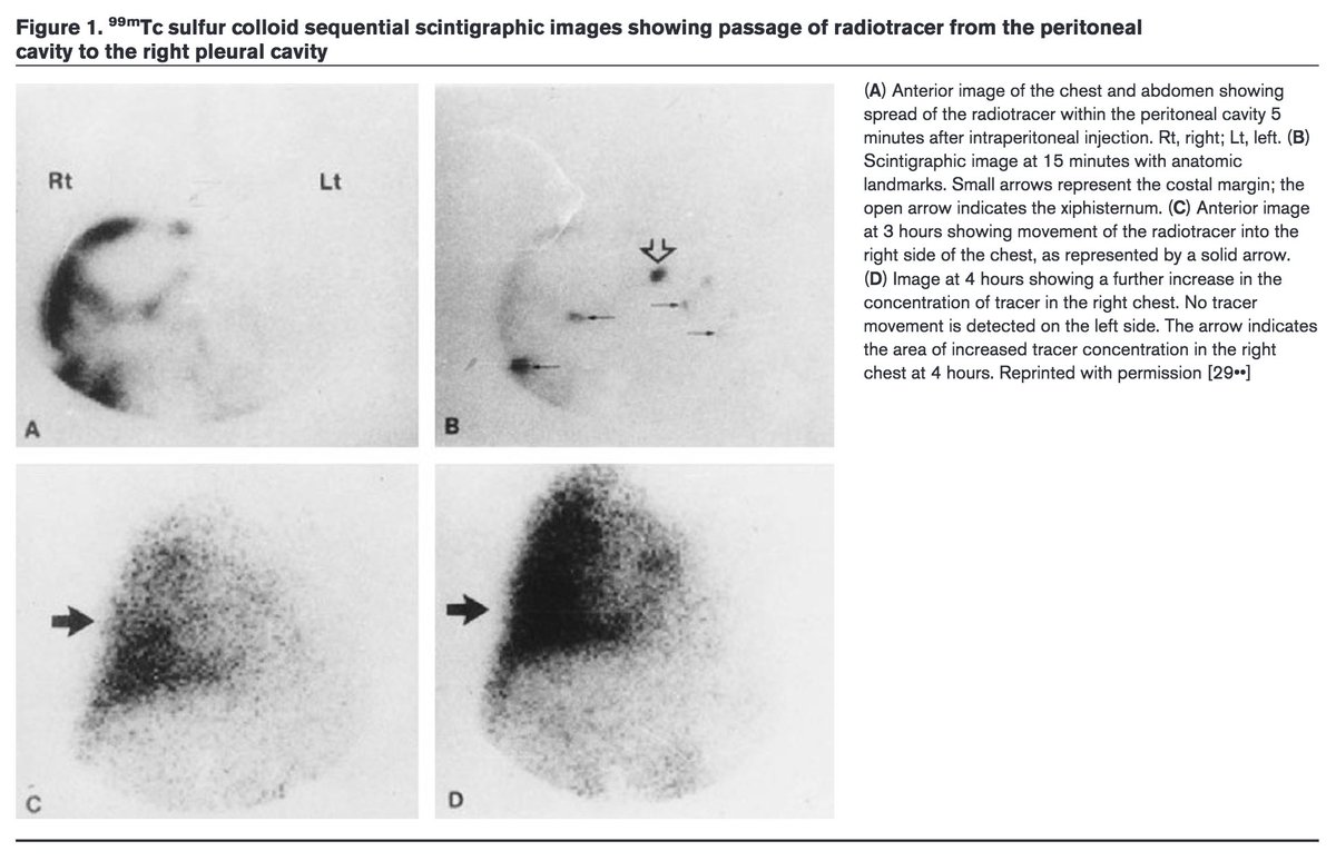 Evidence of direct movement of fluid across the diaphragm is also suggested by studies showing that radiolabeled tracer injected into the peritoneal cavity rapidly appears in the pleural space.