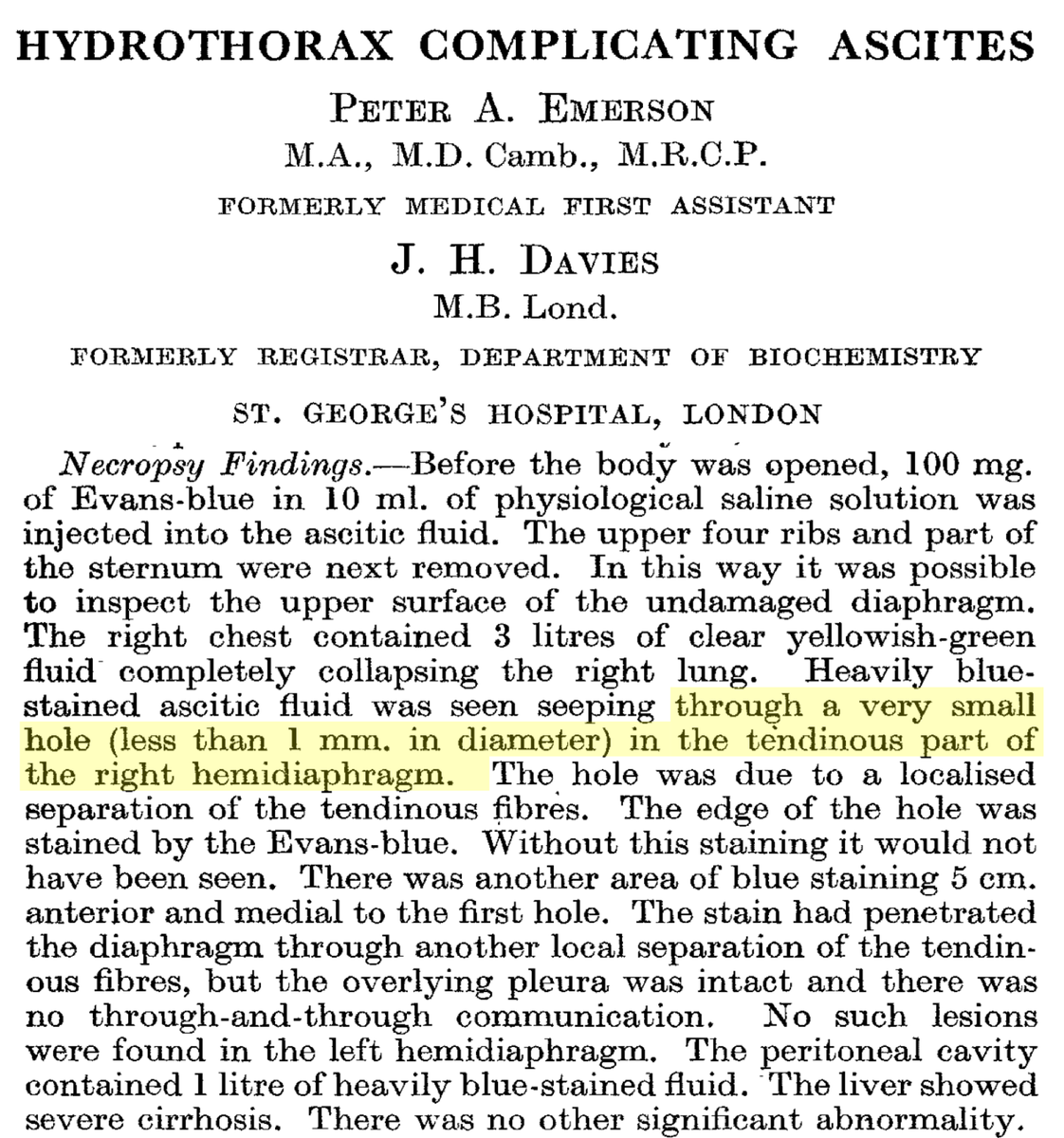 They argued that this was the channel across which ascites passed, "transforming" into a pleural effusion.