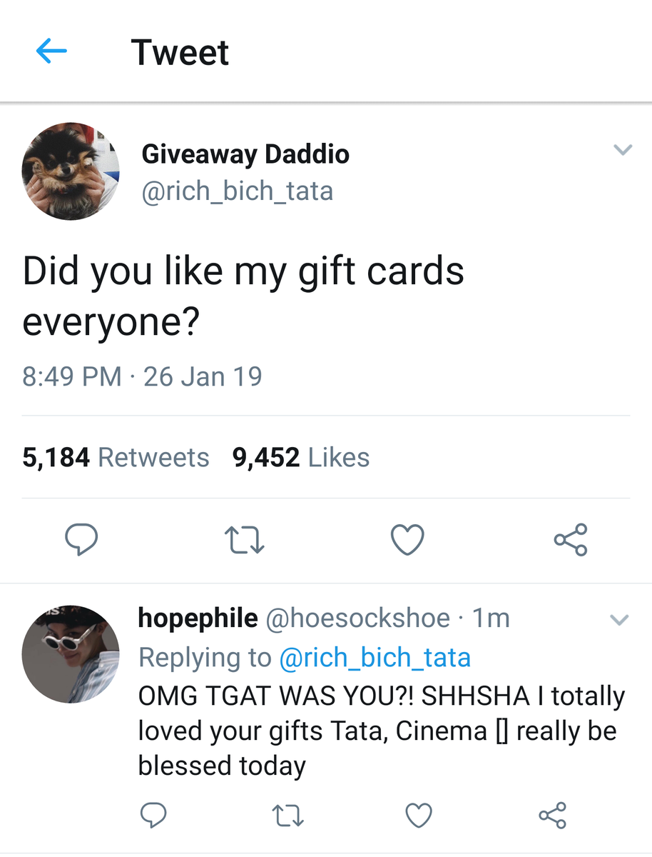 - Giveaway daddy Tae that likes to dumb dare his followers for deals