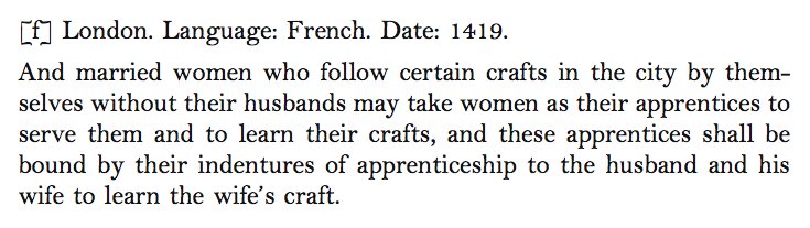 Medieval women in London had the right to take on female apprentices if the practiced a craft or a trade.