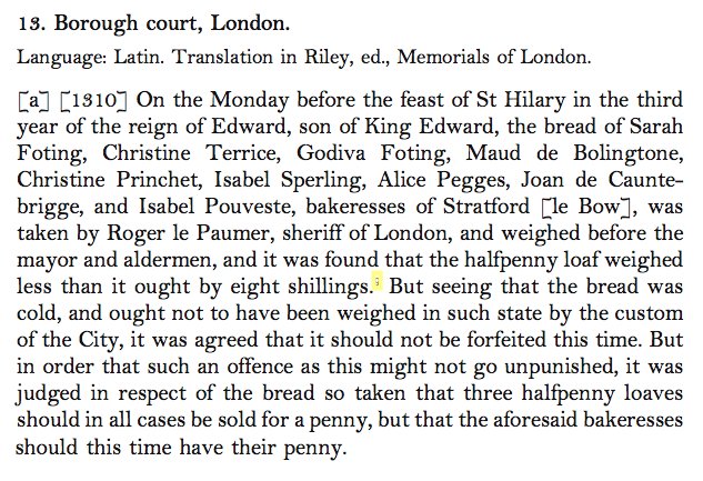 Here a team of medieval women working their own commercial bakery in London are accused of overcharging for their goods but get off on a technicality. Poor Roger le Paumer, sheriff of London, must have felt humiliated as he was only trying to do his job for the public good.