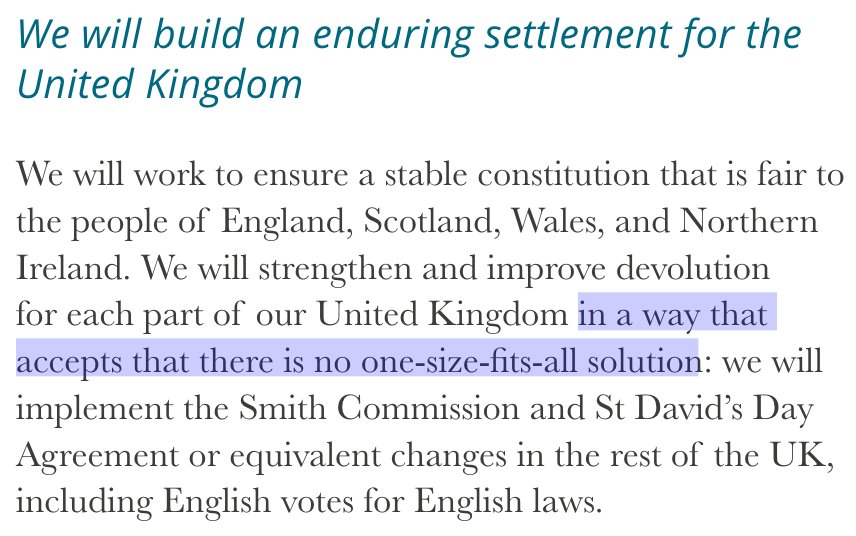 It's worth mentioning that at this point, the government's majority was based on a manifesto which said there was "no one-size-fits-all solution" for the United Kingdon. ucrel.lancs.ac.uk/wmatrix/ukmani… (7/x)