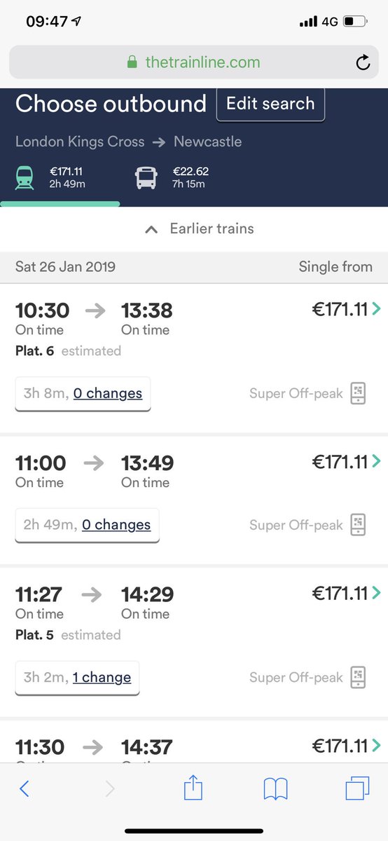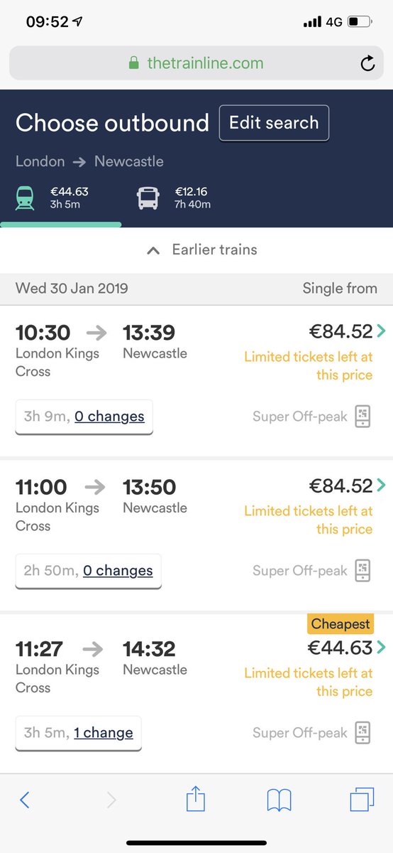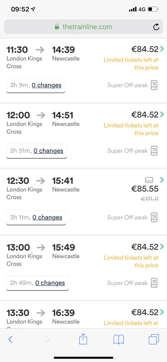 Just checked other direction (London KC to Newcastle upon Tyne), walk-on price, same as NCL-Lon (£171). Absolutely incredible.