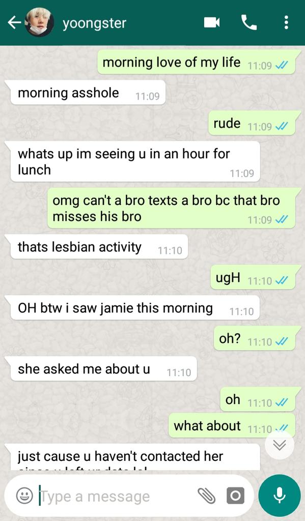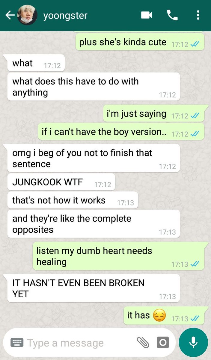 • girl! jimin will mostly be referred to as jamie because that's how she goes by even though everyone knows her name is jimin