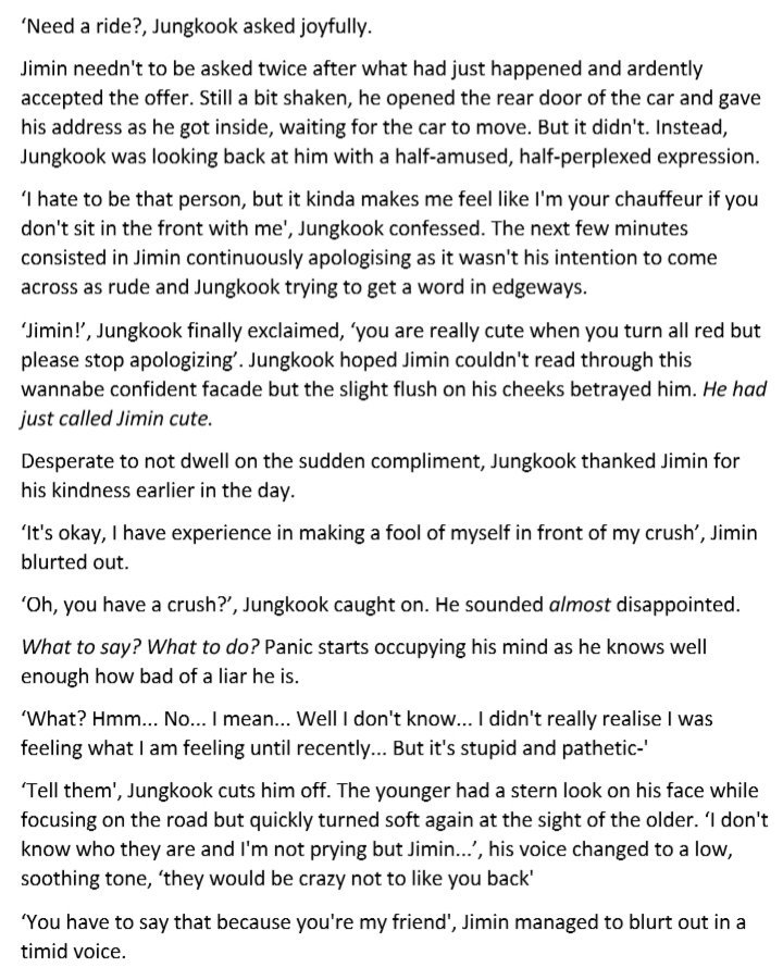 park jimin's idol group makes an appearance on the hottest variety show in korea. he has a big fat secret crush on one of the hosts, jeon jungkook who is very clearly flirting with his fellow member, min yoongi - so jimin becomes petty on national tv.