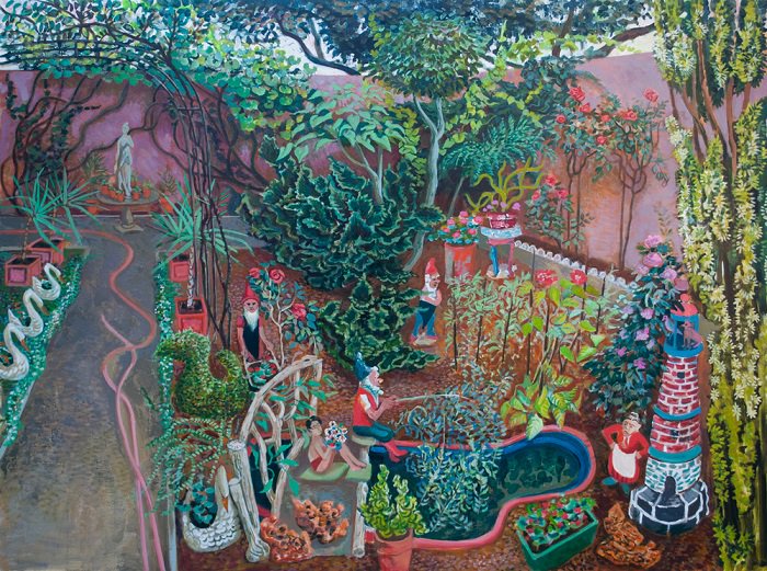 L’artiste François Jeannet a cherché, de toile en toile, à fixer cet art de vivre unique aux mondes jardinés. Ses tableaux affichent cette fierté du travail et du lien, professionnelle et personnelle, dont les jardiniers sont à la fois les architectes et les gardiens.