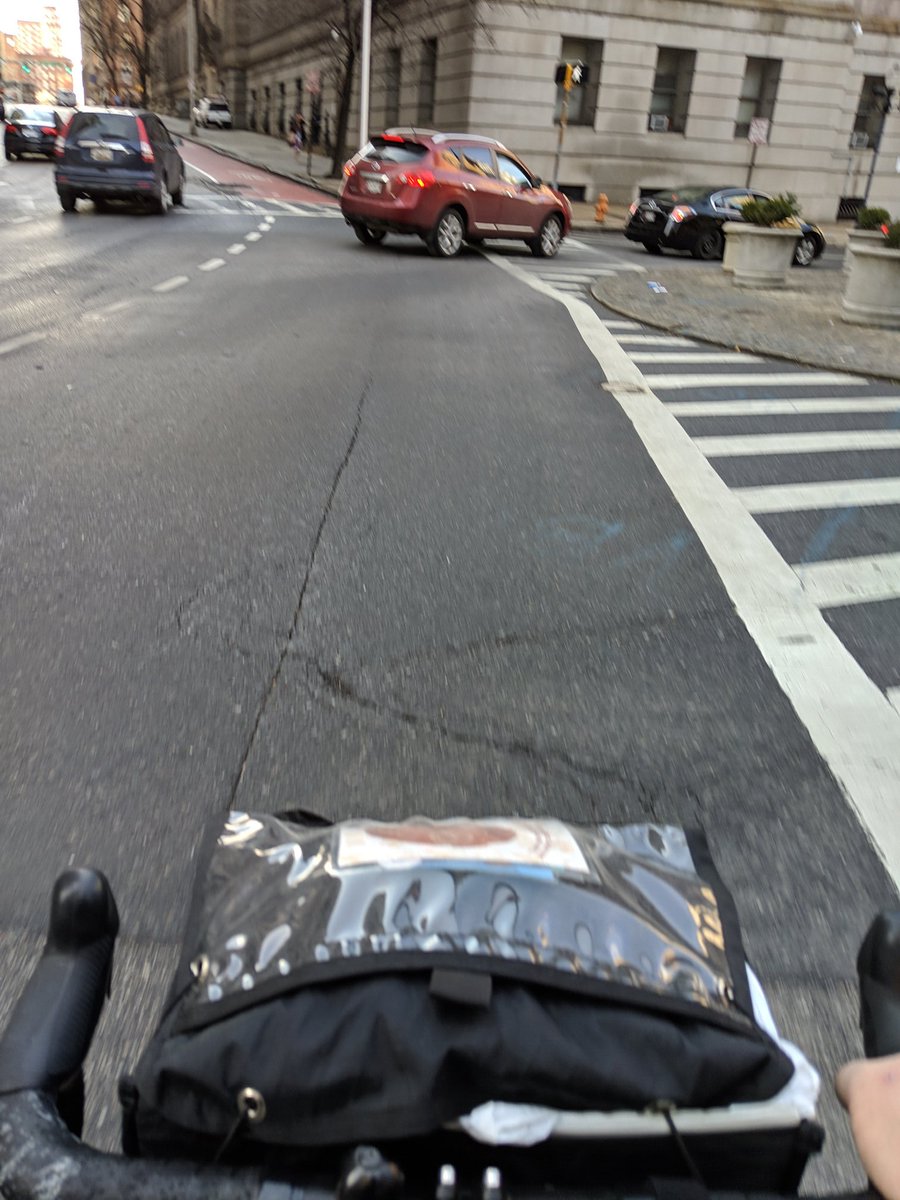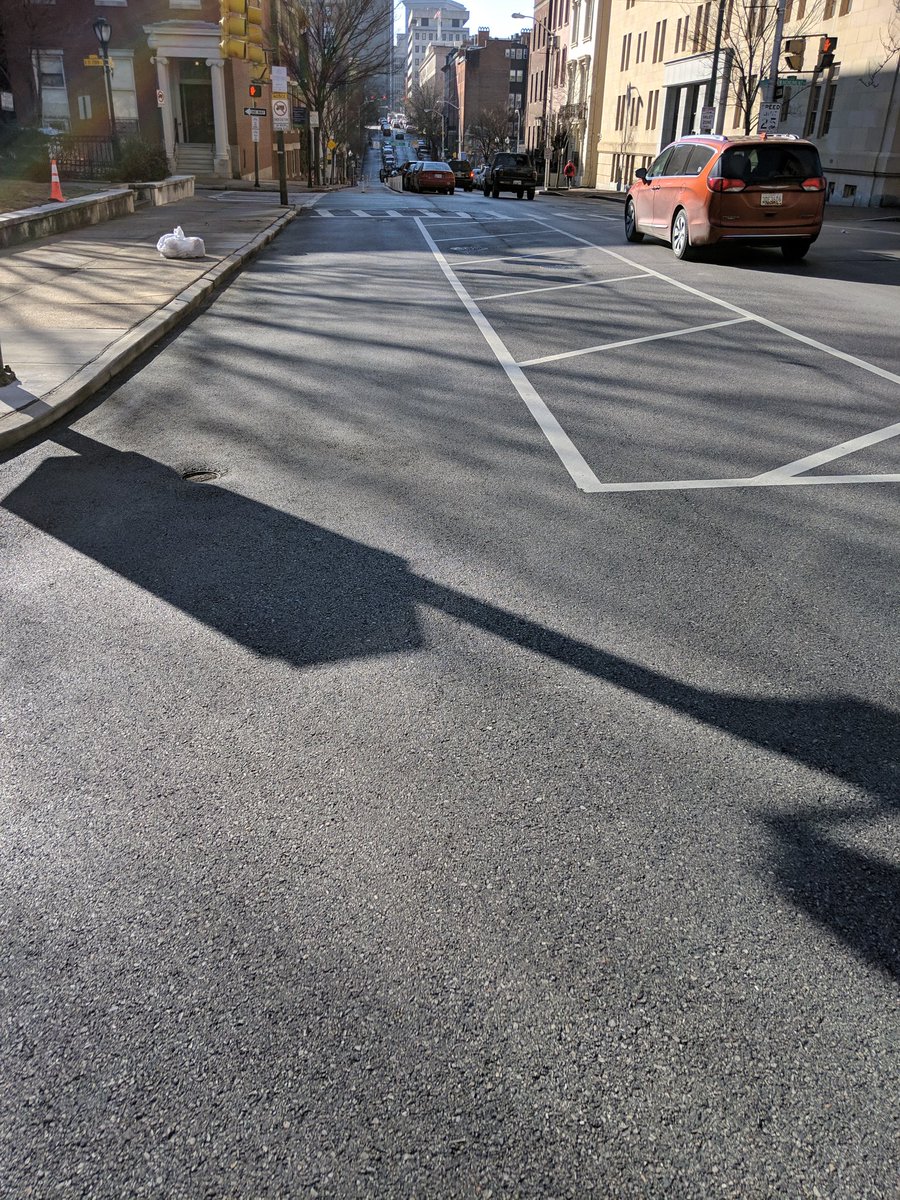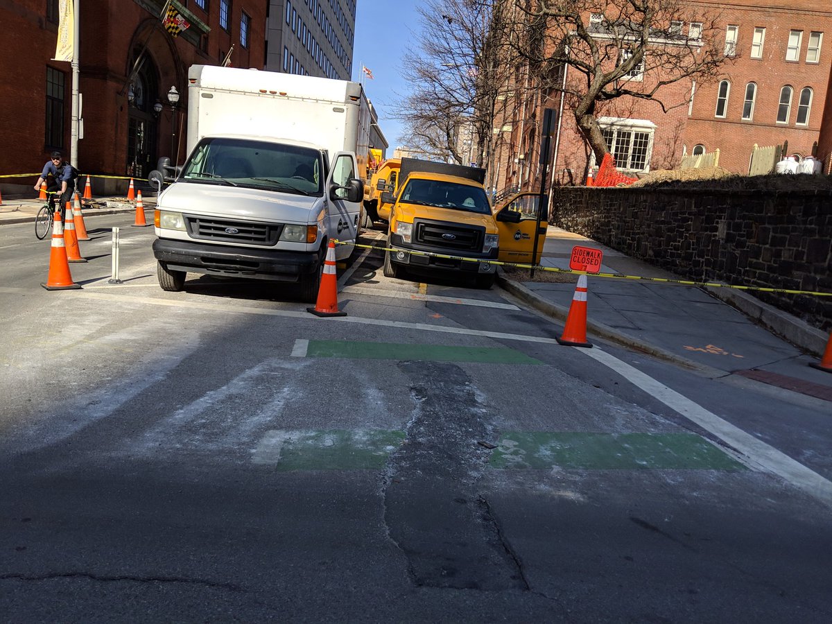 Another street cut in the entire Maryland cycletrack with a half-ass attempt at a warning.