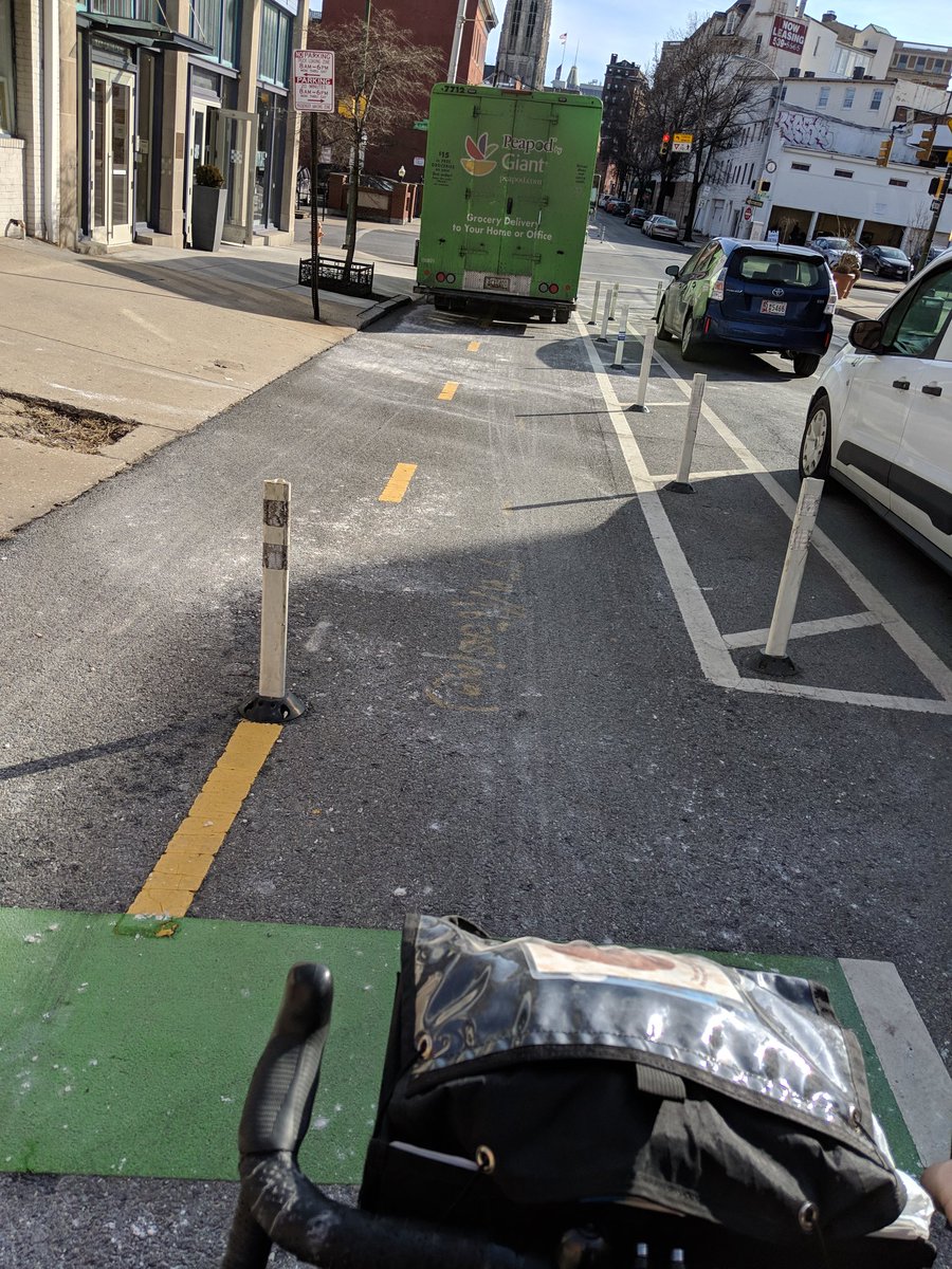 .@GiantFood delivery is parked in the bike lane despite loading zones and open parking.