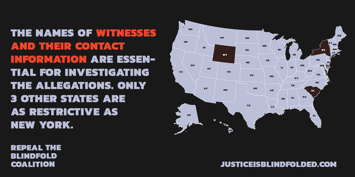 And while witness information is critical for investigating the accusations against you, people in New York may never even know the name of the person accusing them of a crime. We're one of only four states that are as restrictive.