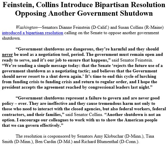 We’re sending a simple message today: that the Senate “rejects the future use of a government shutdown as a negotiating tactic; and believes that the government should never resort to a shut down again.”