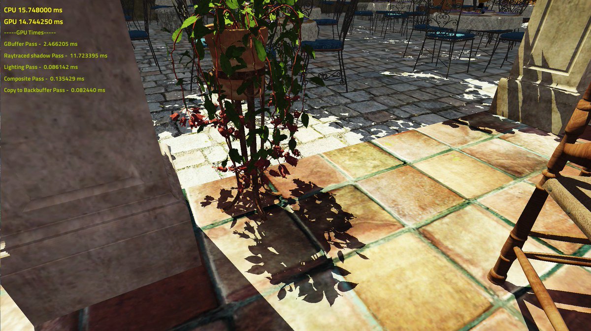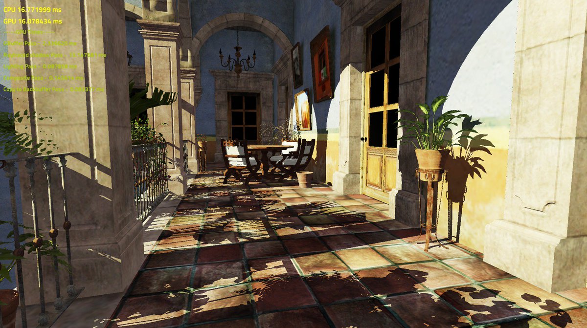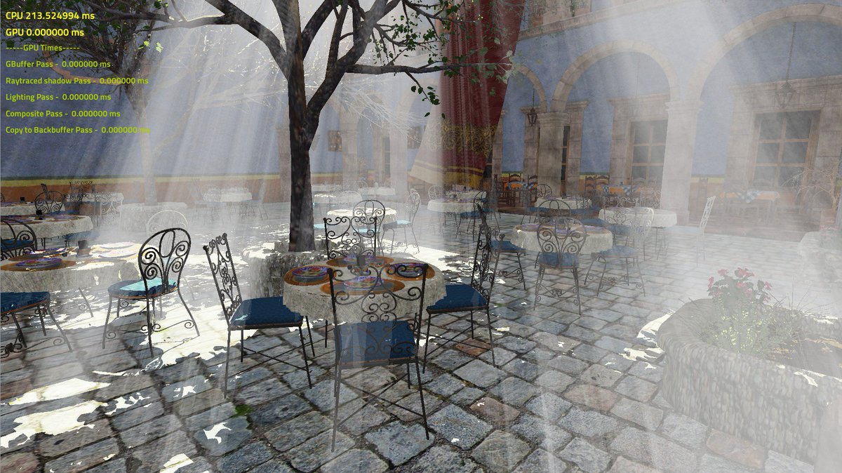 Lately I pushed it even further raytracing the more triangle heavy San Miguel which also added alpha testing. BVH creation became a bottleneck, binned BVH made it faster but also made creating high quality trees trickier (and the shader more complex), impacting raytracing cost.