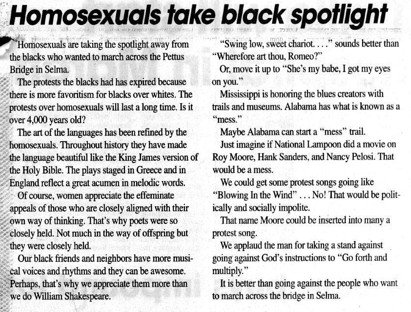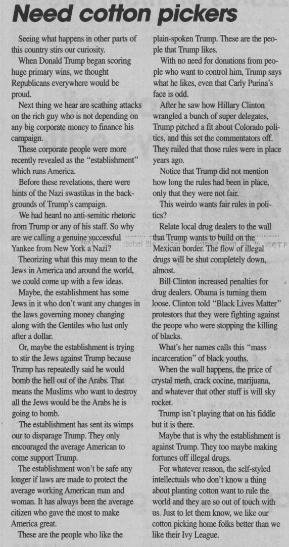 After a review of dozens of issues of the paper, it's clear the racist editorial brought to light yesterday was not a one-off event. It's common.