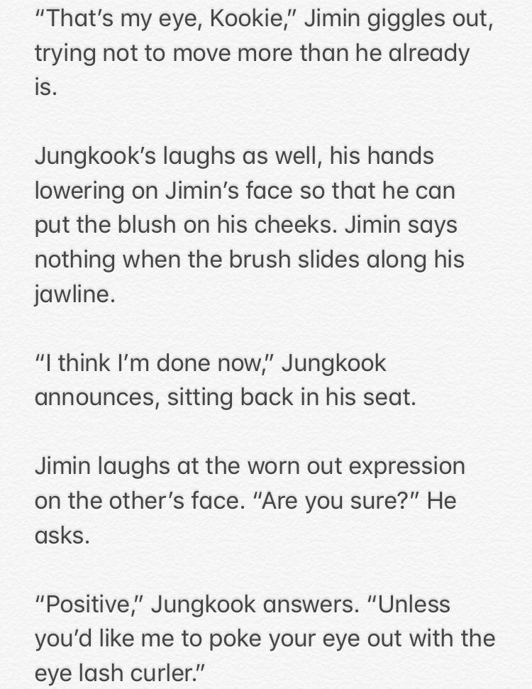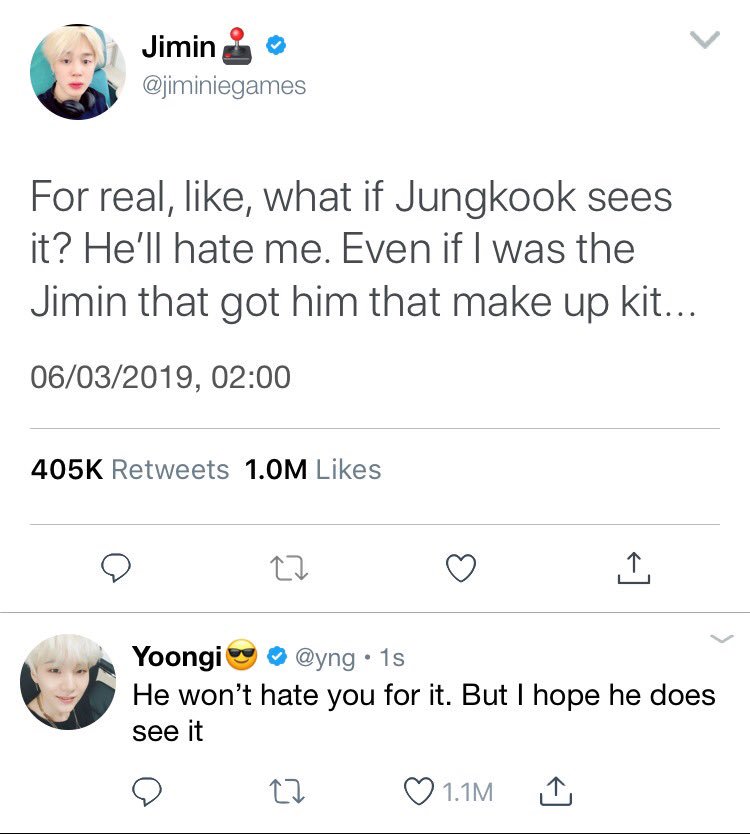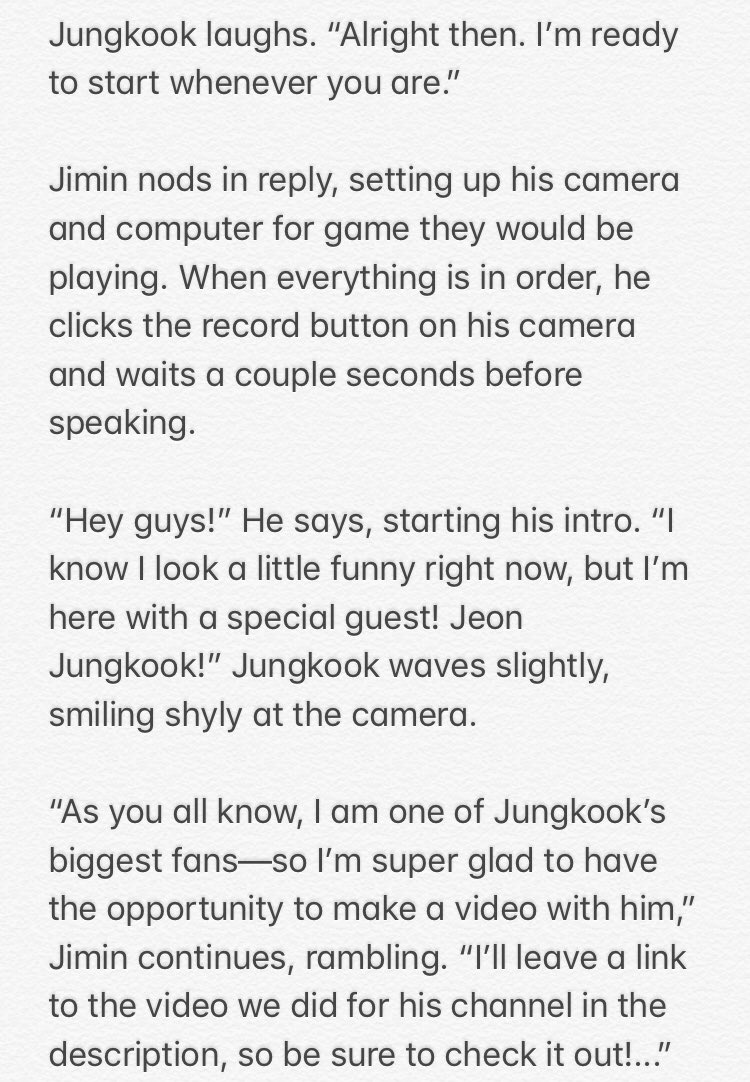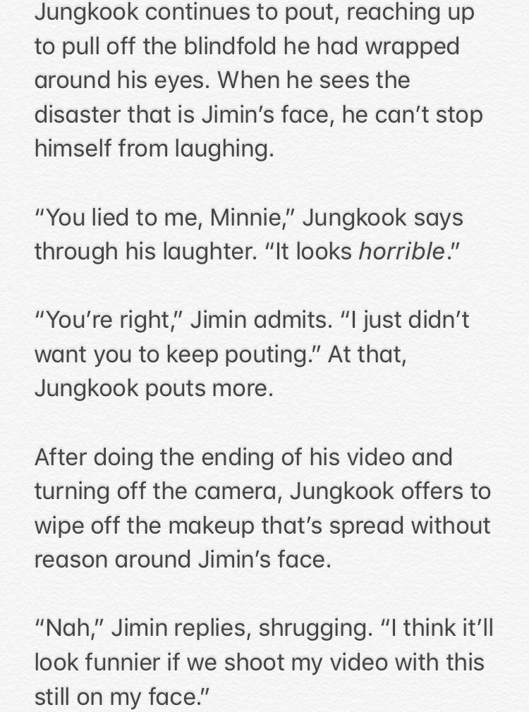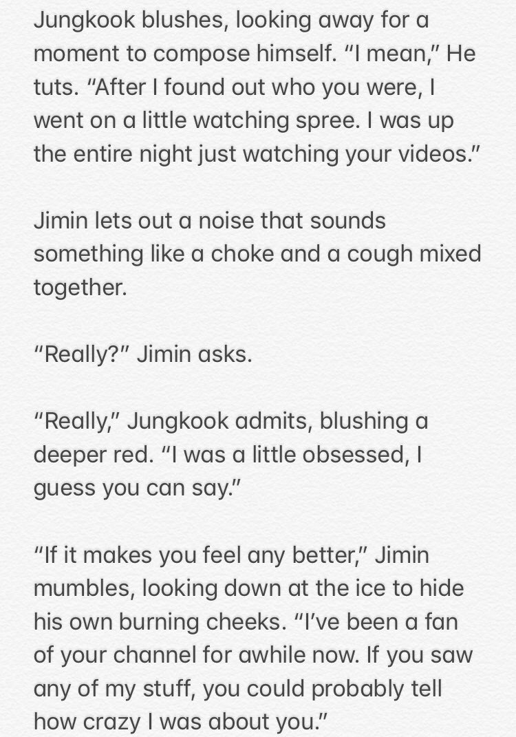 Jungkook is a popular beauty guru on YouTube. Jimin is a less popular gamer/vlogger who’s open about his crush on the other. Jungkook has been in relationship for over a year, not realizing she’s only using him. Until he sees Jimin’s Twitter thread.