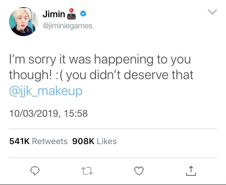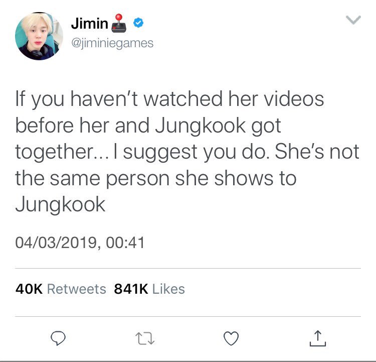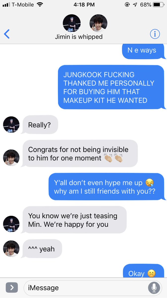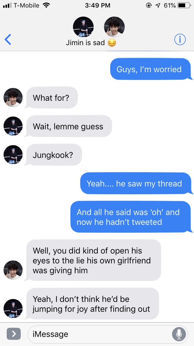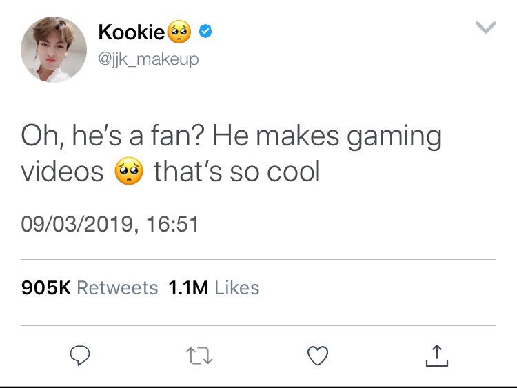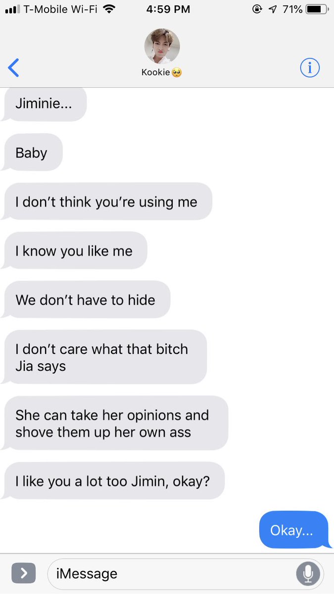 Jungkook is a popular beauty guru on YouTube. Jimin is a less popular gamer/vlogger who’s open about his crush on the other. Jungkook has been in relationship for over a year, not realizing she’s only using him. Until he sees Jimin’s Twitter thread.