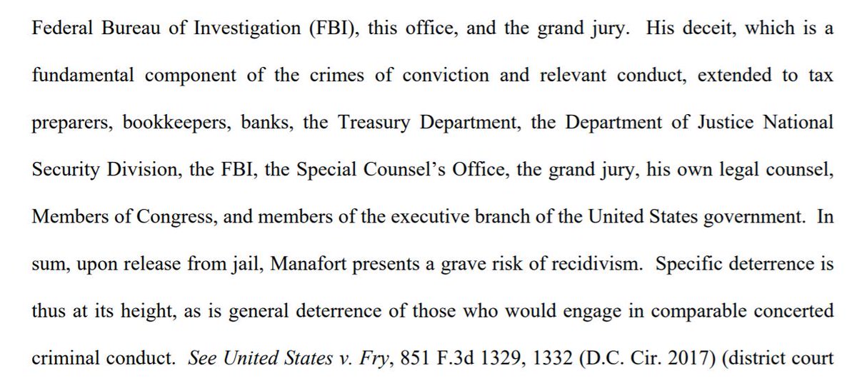 Remember, the guideline range in Manafort's DC case - 17-22 years - is basically double the maximum sentence the judge can actually impose, which is 10 years. The government's memo is an argument that something quite near the maximum would be appropriate.