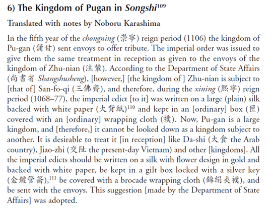 It is a letter (a “memo” of sorts) to the Song Emperor Huizong, expressing an objection by a Minister to the royal order to receive diplomats from the Pagan Kingdom (蒲甘—púgān, Myanmar) with same honors as chOzha (注輦—zhùniǎn) embassies. chinesenotes.com/songshi/songsh…
