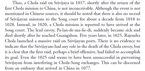 CHOLA-SRIVIJAYA-CHINA TRIANGLE" by Tansen Sen in "Nagapattinam to Suvarnadwipa: Reflections on the Chola Naval Expeditions to Southeast Asia" (2009).