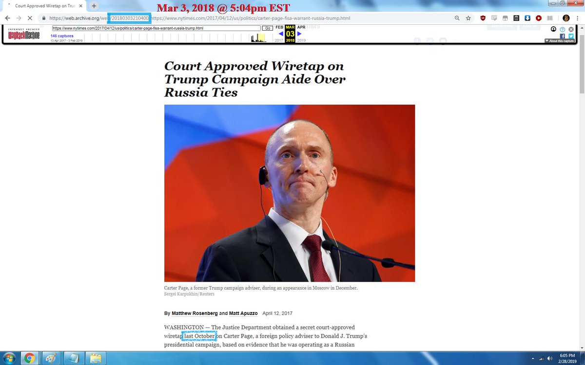 03/03/18 | By 5:04pm EST, wiretap approved "last October" bit.ly/2IJuUfO