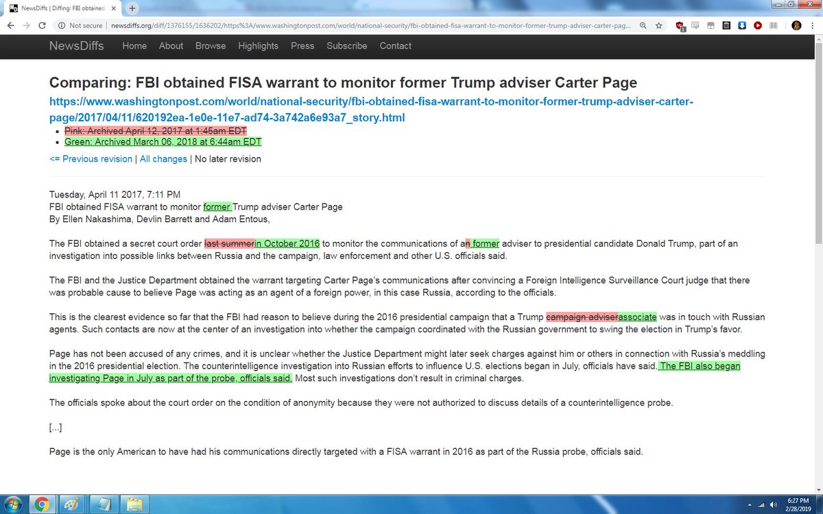 3/6/18 | At 6:44am EST, the Washington Post changes "last summer" to "October 2016" bit.ly/2UfnUs6