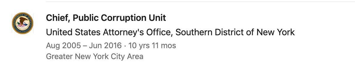 Devlin-Brown was the chief of the public corruption unit at the US attorney's SDNY office till June 2016.