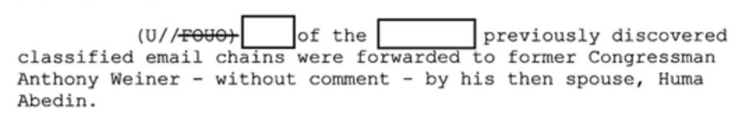 NEWS: Top Clinton aide Huma Abedin forwarded classified emails to her husband, Anthony Weiner, without a comment, according to newly released FBI docs.