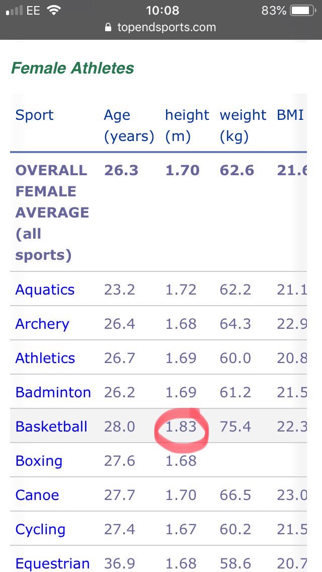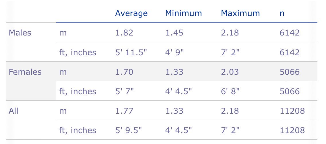 Apologies, this tweet may be a little hasty in language. RM is well above average for the female pool and bang on average for the male pool. Of course, this would make RM taller than the combined pools. My wording makes it sound like RM is taller than the male average. RM is not.