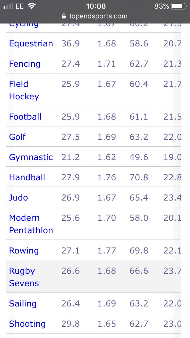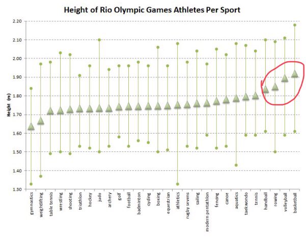 Hmm, if only some sporting body, say the IOC, released details of a systematic databasing of height/weight/etc of athletes at one of their competitions, say Rio 2016. 1/