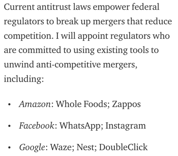 Google Search would have to be spun off from Ads but nothing will change w/your search experience. Nevermind that 87% of Google's revenue comes from ads; when you don't need to worry about realities of business, it's easy to imagine how companies will just magically make it work.
