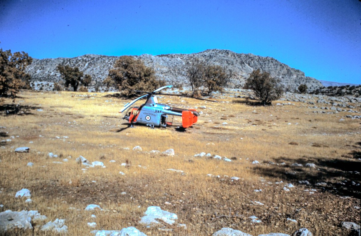 Two of the very rare color photographs of an Imperial Iranian Army Aviation HH-43F Husky depicting serial 4-512, circa September 1968.